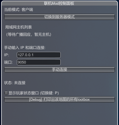联机Mod控制面板,MOD 默认为客户端模式,无需切换在
